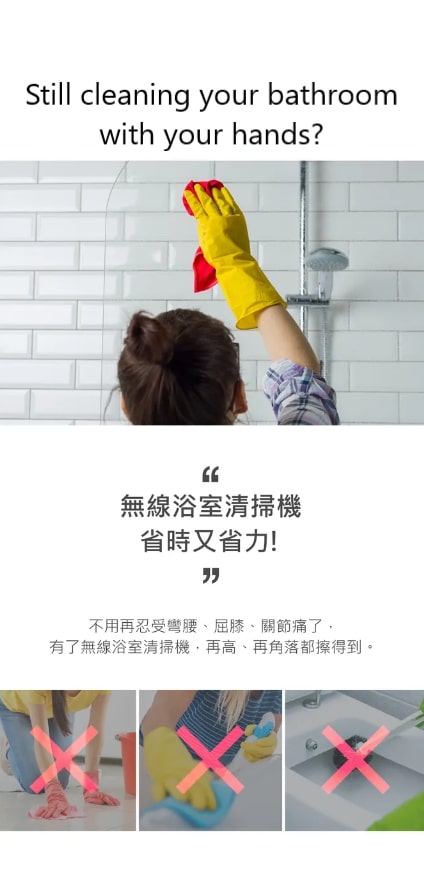 No more backaches and joint pain. With this wireless bathroom scrubber, you can now reach high ceiling and out of reach corners.